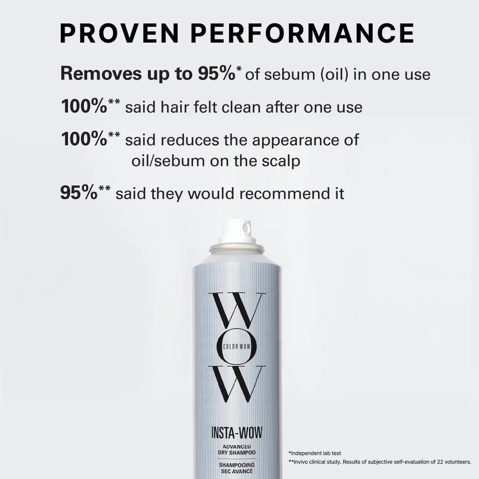 Potencializado pela tecnologia de limpeza real encontrada em shampoos tradicionais e amidos avançados que removem a oleosidade, o Shampoo Seco Avançado Insta-Wow refresca instantaneamente as raízes sem resíduos, resíduos ou acúmulo. Basta borrifar, esperar alguns segundos e escovar para remover a oleosidade. O cabelo fica leve, arejado, macio e limpo — como se tivesse sido lavado recentemente.